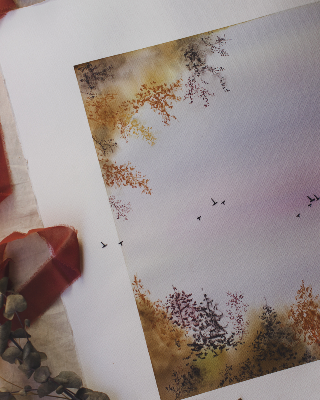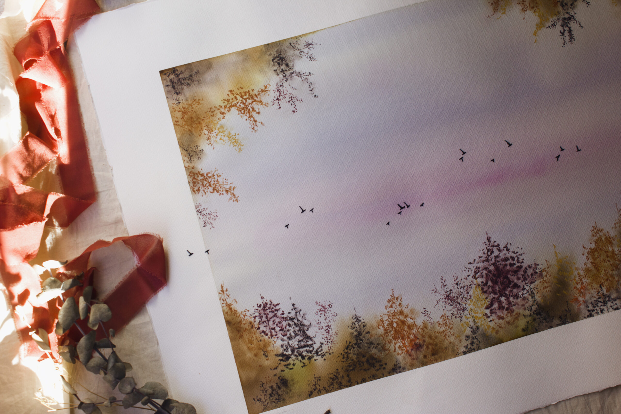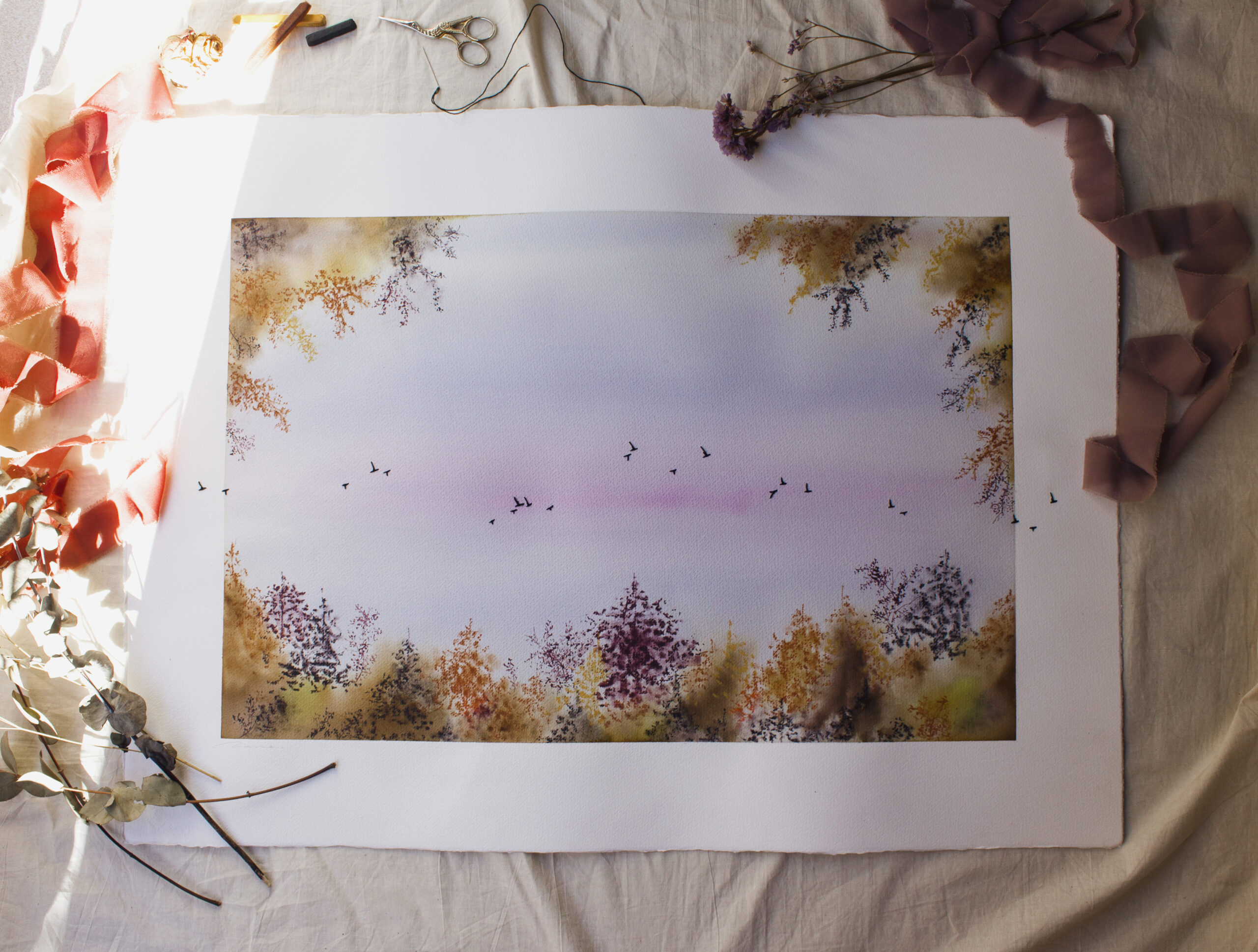 Acuarela original y tinta soluble en papel Lanaquarelle grano fino de 300 gr/m2, libre de ácido