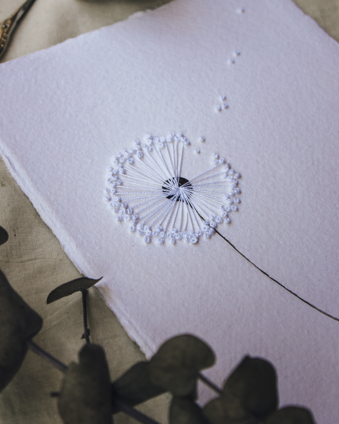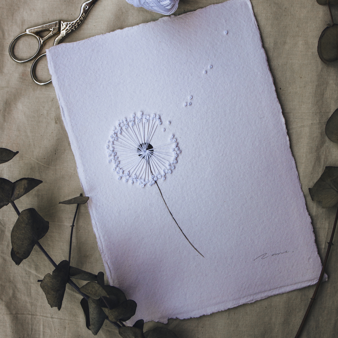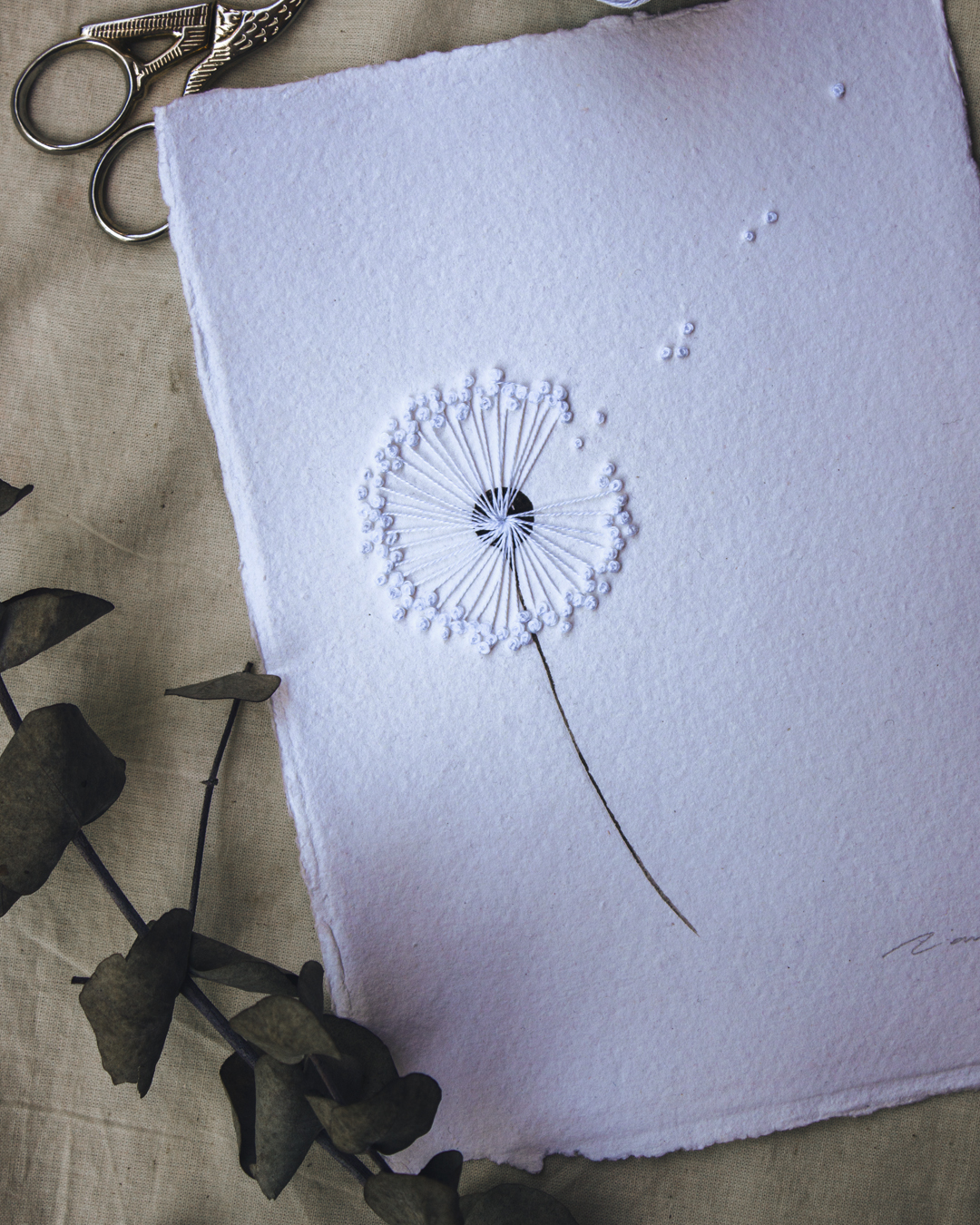 Acuarela y bordado a mano sobre papel Khadi 640g/m2 artesanal, 100% algodón.