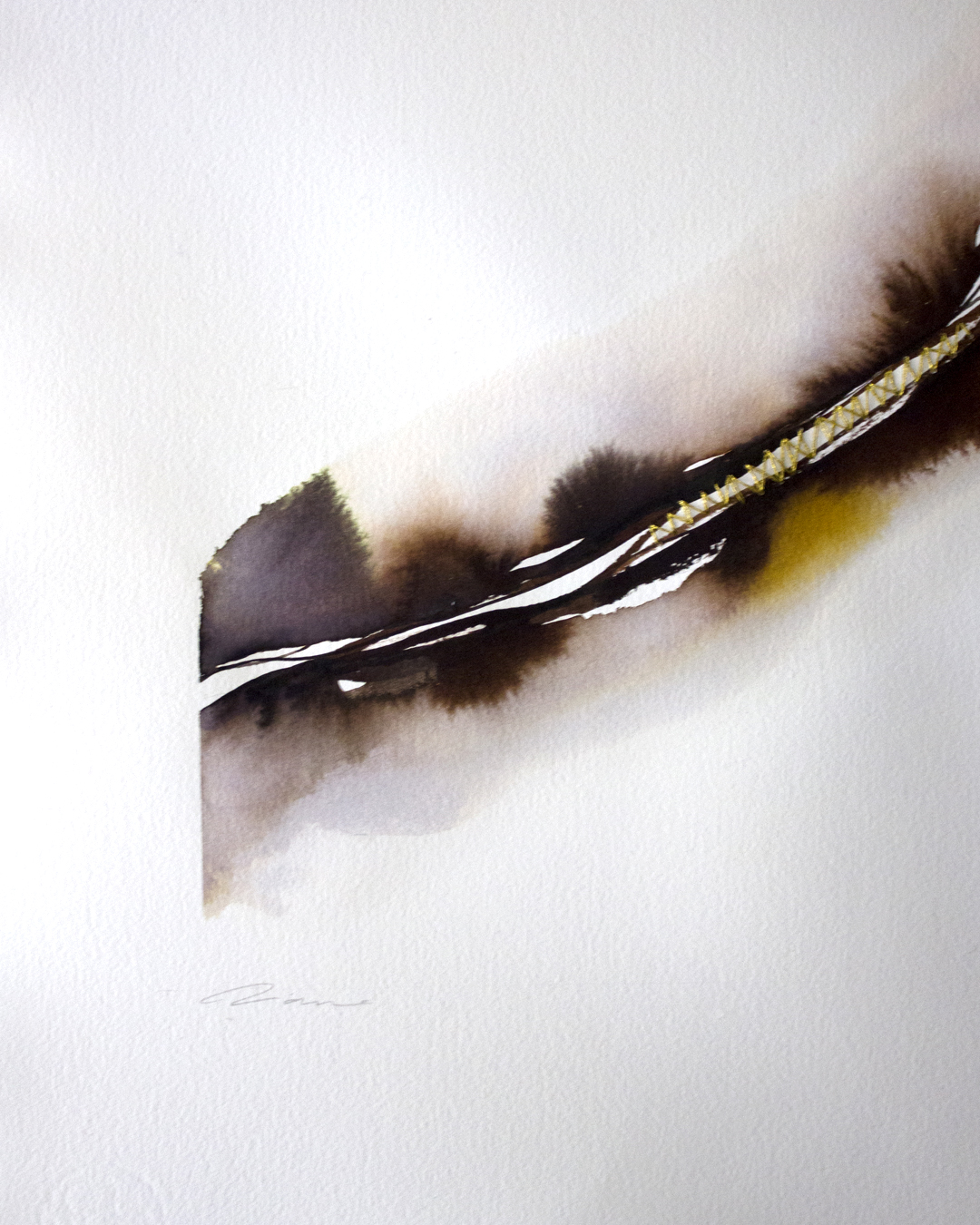 Acuarela original y bordado a mano en hilo dorado sobre papel Hahnemühle grano fino de 300 gr/m2, libre de ácido, 100% algodón
