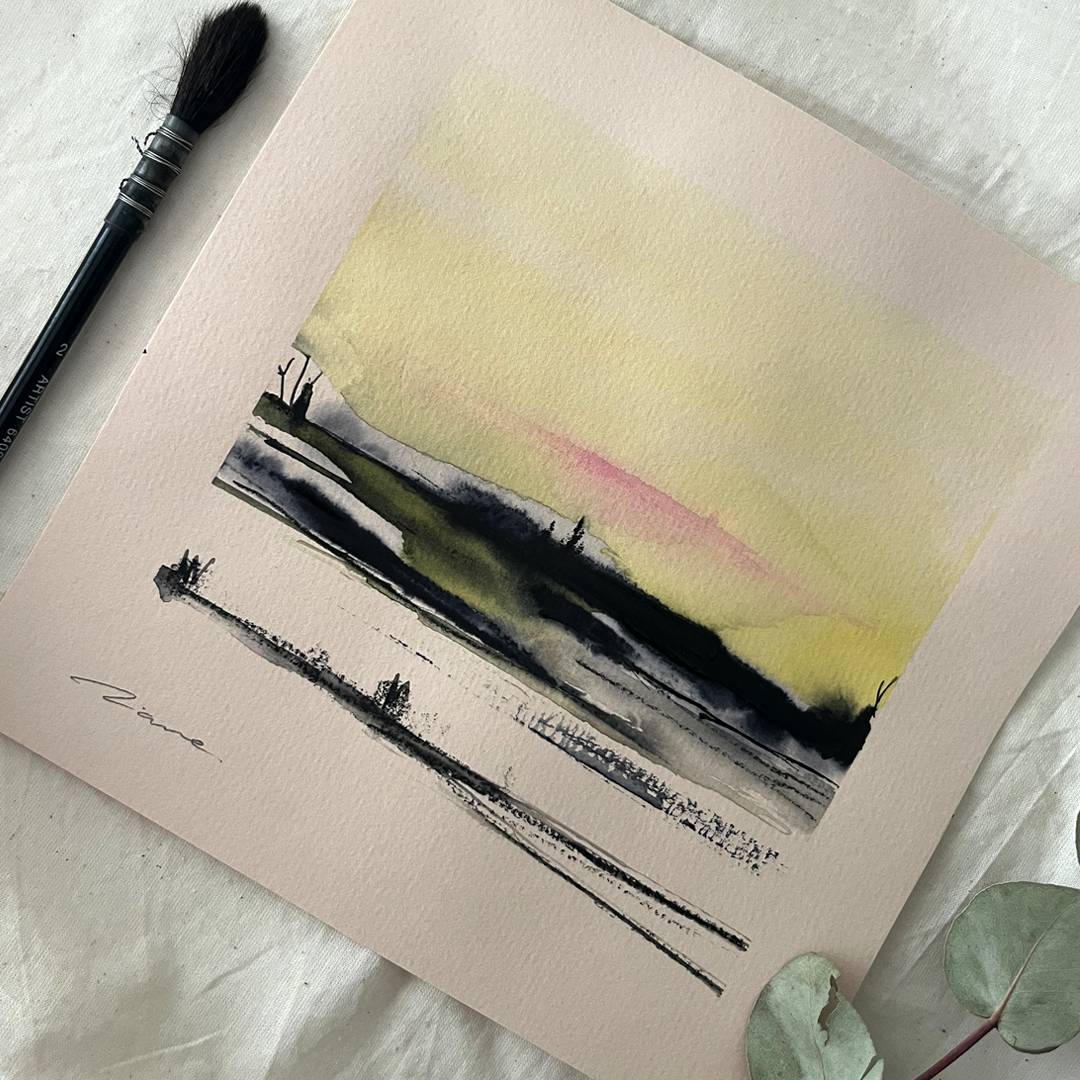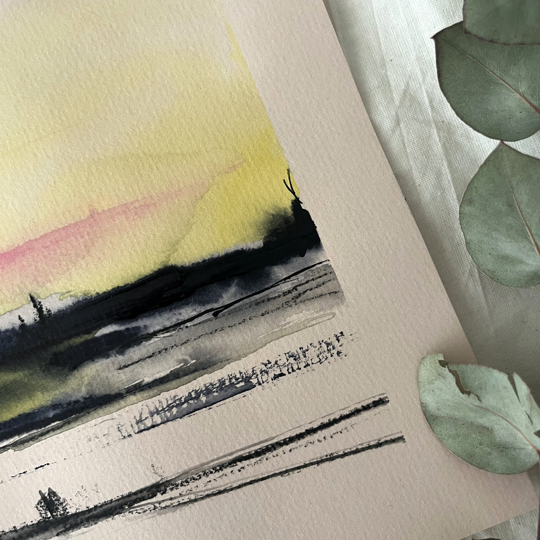 Acuarela original y grafito en papel Hahnemühle tono beige de 200g/m2